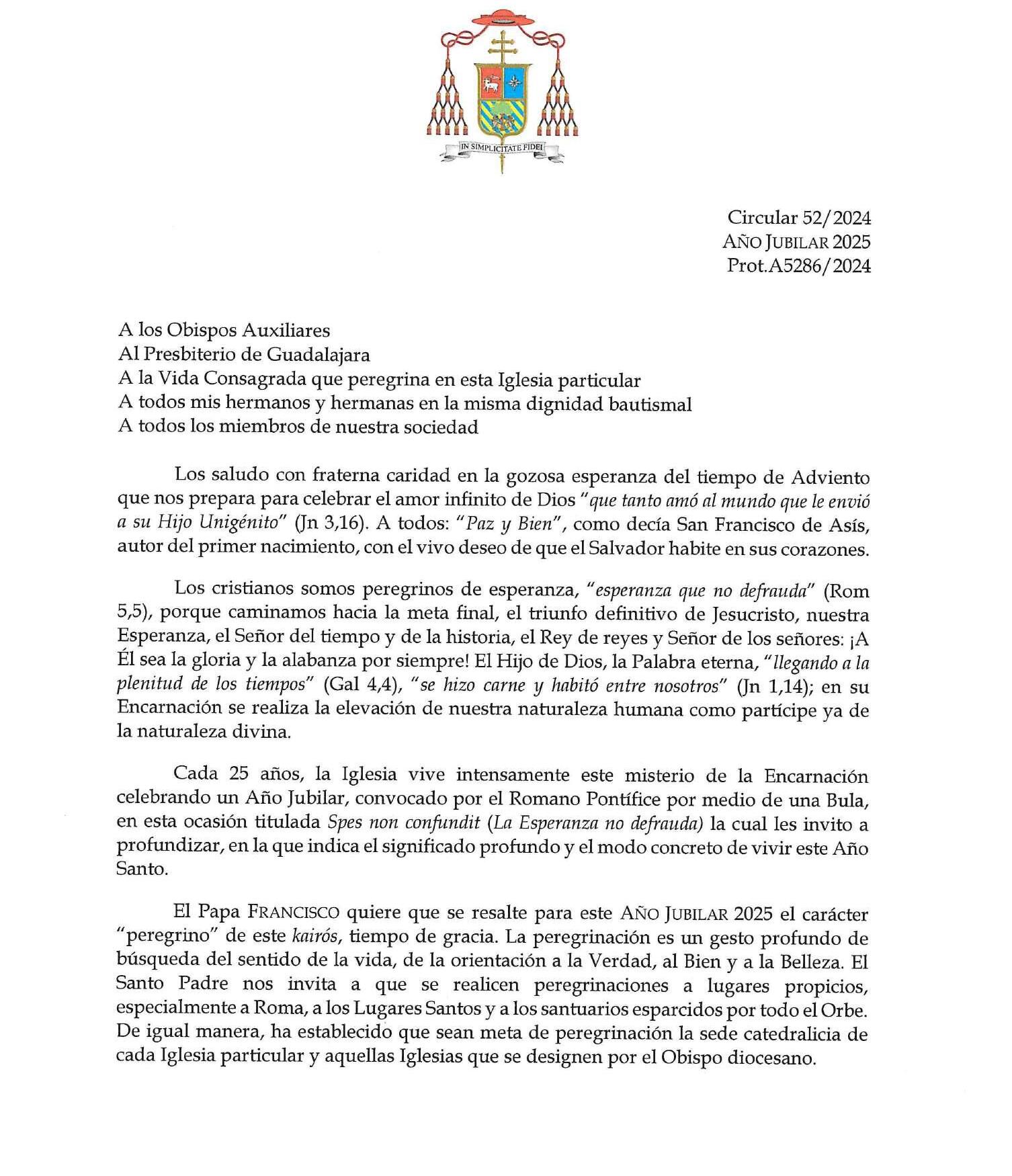 Página 1 de 11, circular número 52. Ver el documento completo en: https://arquidiocesisgdl.org/comunicadosycirculares/2024/cir52.php