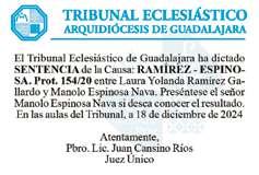 1997 • Registrado ante la Comisión Calificadora de Publicaciones y Revistas Ilustradas —CCPRI— en Certificados de Licitud de Título y Contenido números 10296 y 7226 expediente 1/432“97”/13565 el 20 de enero de 1998 y en el Instituto Nacional de Derecho de Autor, bajo reserva al uso exclusivo del título 04-2018-021211450400-101 el 12 de febrero de 2018 • Registro Postal Publicación Periódica PP14-0002-2000, autorización por SEPOMEX No se devuelven originales. Los escritos firmados son responsabilidad del autor, no de la publicación ni del titular Es una publicación editada por Creator Comunicación, S. de R.L. de C.V., con oficinas y redacción en Isla Flores N. 3344-2, Col. Jardines de San José, Guadalajara, Jal., México, C.P. 44950 A.P. 3-31. Los anuncios que se muestran en Semanario son responsabilidad, única y exclusivamente, del solicitante. No nos hacemos responsables de los servicios que se publicitan.