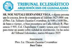 Semanario Arquidiocesano de Guadalajara Órgano de Formación e Información Católica Semanario Arquidiocesano de Guadalajara, fundado por el Sr. Cardenal Dn. Juan Sandoval Íñiguez, el 24 de enero de 1997 • Registrado ante la Comisión Calificadora de Publicaciones y Revistas Ilustradas —CCPRI— en Certificados de Licitud de Título y Contenido números 10296 y 7226 expediente 1/432“97”/13565 el 20 de enero de 1998 y en el Instituto Nacional de Derecho de Autor, bajo reserva al uso exclusivo del título 04-2018-021211450400-101 el 12 de febrero de 2018 • Registro Postal Publicación Periódica PP14-0002-2000, autorización por SEPOMEX No se devuelven originales. Los escritos firmados son responsabilidad del autor, no de la publicación ni del titular Es una publicación editada por Creator Comunicación, S. de R.L. de C.V., con oficinas y redacción en Isla Flores N. 3344-2, Col. Jardines de San José, Guadalajara, Jal., México, C.P. 44950 A.P. 3-31. Los anuncios que se muestran en Semanario son responsabilidad, única y exclusivamente, del solicitante. No nos hacemos responsables de los servicios que se publicitan.