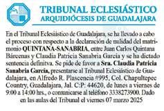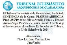 Semanario Arquidiocesano de Guadalajara Órgano de Formación e Información Católica Semanario Arquidiocesano de Guadalajara, fundado por el Sr. Cardenal Dn. Juan Sandoval Íñiguez, el 24 de enero de 1997 • Registrado ante la Comisión Calificadora de Publicaciones y Revistas Ilustradas —CCPRI— en Certificados de Licitud de Título y Contenido números 10296 y 7226 expediente 1/432“97”/13565 el 20 de enero de 1998 y en el Instituto Nacional de Derecho de Autor, bajo reserva al uso exclusivo del título 04-2018-021211450400-101 el 12 de febrero de 2018 • Registro Postal Publicación Periódica PP14-0002-2000, autorización por SEPOMEX No se devuelven originales. Los escritos firmados son responsabilidad del autor, no de la publicación ni del titular Es una publicación editada por Creator Comunicación, S. de R.L. de C.V., con oficinas y redacción en Isla Flores N. 3344-2, Col. Jardines de San José, Guadalajara, Jal., México, C.P. 44950 A.P. 3-31. Los anuncios que se muestran en Semanario son responsabilidad, única y exclusivamente, del solicitante. No nos hacemos responsables de los servicios que se publicitan.