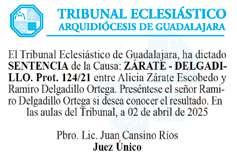 Semanario Arquidiocesano de Guadalajara Órgano de Formación e Información Católica Semanario Arquidiocesano de Guadalajara, fundado por el Sr. Cardenal Dn. Juan Sandoval Íñiguez, el 24 de enero de 1997 • Registrado ante la Comisión Calificadora de Publicaciones y Revistas Ilustradas —CCPRI— en Certificados de Licitud de Título y Contenido números 10296 y 7226 expediente 1/432“97”/13565 el 20 de enero de 1998 y en el Instituto Nacional de Derecho de Autor, bajo reserva al uso exclusivo del título 04-2018-021211450400-101 el 12 de febrero de 2018 • Registro Postal Publicación Periódica PP14-0002-2000, autorización por SEPOMEX No se devuelven originales. Los escritos firmados son responsabilidad del autor, no de la publicación ni del titular Es una publicación editada por Creator Comunicación, S. de R.L. de C.V., con oficinas y redacción en Isla Flores N. 3344-2, Col. Jardines de San José, Guadalajara, Jal., México, C.P. 44950 A.P. 3-31. Los anuncios que se muestran en Semanario son responsabilidad, única y exclusivamente, del solicitante. No nos hacemos responsables de los servicios que se publicitan.