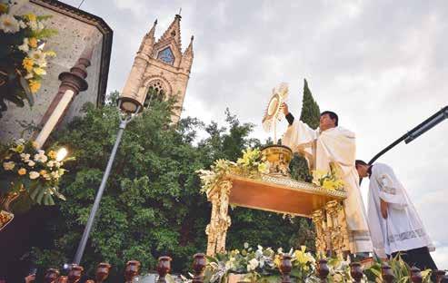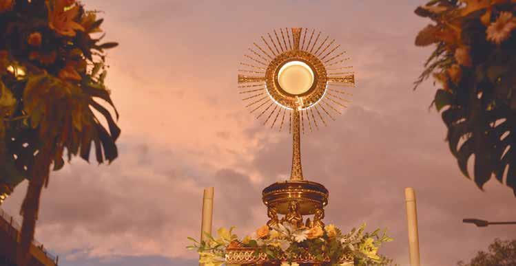Entregó su Cuerpo al sacri cio, derramó su Sangre por nuestra salvación, de manera que su presencia en la Eucaristía es una presencia que nos salva, nos sana, nos renueva, nos reanima, nos sostiene, y que solo Dios puede ofrecernos y garantizarnos. Su presencia real es porque Dios quiere salvarnos.