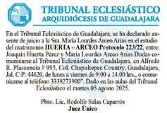 Órgano de Formación e Información Católica Semanario Arquidiocesano de Guadalajara, fundado por el Sr. Cardenal Dn. Juan Sandoval Íñiguez, el 24 de enero de 1997 • Registrado ante la Comisión Calificadora de Publicaciones y Revistas Ilustradas —CCPRI— en Certificados de Licitud de Título y Contenido números 10296 y 7226 expediente 1/432“97”/13565 el 20 de enero de 1998 y en el Instituto Nacional de Derecho de Autor, bajo reserva al uso exclusivo del título 04-2018-021211450400-101 el 12 de febrero de 2018 • Registro Postal Publicación Periódica PP14-0002-2000, autorización por SEPOMEX No se devuelven originales. Los escritos firmados son responsabilidad del autor, no de la publicación ni del titular Es una publicación editada por Creator Comunicación, S. de R.L. de C.V., con oficinas y redacción en Isla Flores N. 3344-2, Col. Jardines de San José, Guadalajara, Jal., México, C.P. 44950 A.P. 3-31. Los anuncios que se muestran en Semanario son responsabilidad, única y exclusivamente, del solicitante. No nos hacemos responsables de los servicios que se publicitan.