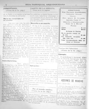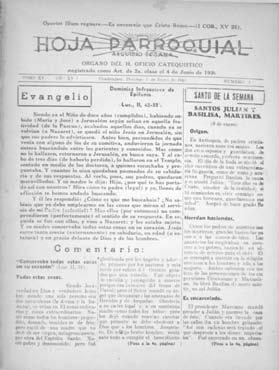 Aunque ahora los Medios de Comunicación Social son muy diversos y sofisticados gracias a la tecnología, los impresos mantienen su relevancia e influencia, sobre todo los que se esfuerzan en sostener una línea coherente de servicio a la verdad y a la promoción de valores humanos y cristianos. Tras ocho décadas de publicación, la Hoja Parroquial circula, con enorme tiraje, en los templos y en los hogares; ámbitos muy idóneos para conocer y profundizar en la Palabra de Dios