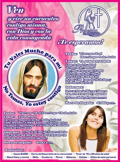 La Escuela de Evangelización San Andrés (EESA) te invita a vivir una Experiencia de Amor con Dios. Retiro "Nueva Vida", para mayores de 17 años de edad. La cita es en la Casa de Retiros en el Bosque de La Primavera. 25, 26 y 27 de junio. Mayores informes, al tel. 38260274 ó al 333-477-9235, con Mayela.
