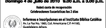 La Escuela Bíblico-Patrística “Orígenes” invita al Curso de Verano de “Lectio Divina”, del 5 al 16 de julio, de lunes a viernes, de las 10 a las 12 horas. Será impartido por el Prof. Arq. Jesús González Flores. La cita es en el Centro Pastoral de San Juan Bautista (Av. Moctezuma 4591, Jardines del Sol). Tel. 3634-3255. Requisito: estudios previos de Biblia.