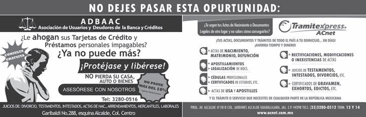 de Milpillas en el Municipio de Tepatitlan de Morelos, Jal). Mayores informes, con el Dr. Miguel Ángel Cortés, a los Tels.: 01378-705-4133, 01378705-4511.