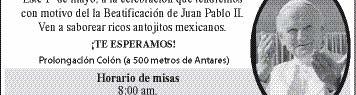 Estamos llenos de satisfacción por el anuncio de la Beatificación del Santo Padre Juan Pablo II, que se efectuará este domingo 1º de Mayo, fecha que eligió el Papa Benedicto XVI por estar relacionada a la festividad en honor de la Divina Misericordia, y que tiene lugar cada Segundo Domingo de Pascua.