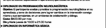 rior", el 18 de junio, de las 19.30 a las 21 horas. Informes e inscripciones, al 3614-3666 ó en Galeana 125-B, entre Juárez y López Cotilla.