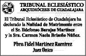 Semanario Arquidiocesano de Guadalajara Órgano de Formación e Información Católica Semanario Arquidiocesano de Guadalajara, fundado por el Sr. Cardenal Dn. Juan Sandoval Íñiguez, el 24 de enero de 1997 Registrado ante la Comisión Calificadora de Publicaciones y Revistas Ilustradas —CCPRI— en Certificados de Licitud de Título y Contenido números 10296 y 7226 expediente 1/432“97”/13565 el 20 de enero de 1998 y en el Instituto Nacional de Derecho de Autor, bajo reserva al uso exclusivo del título 04-2001-082208480600-101 el 22 de agosto de 2001 Registro Postal Publicación Periódica PP14-0002-2000, autorización por SEPOMEX No se devuelven originales. Los escritos firmados son responsabilidad del autor, no de la publicación ni del titular Es una publicación editada por Creator Comunicacion, S de RL de CV., con oficinas y redacción en Isla Flores No. 3344-2, Col. Jardines de San José, Guadalajara, Jal., México, C.P. 44950 A.P. 3-31. Teléfono: 3002-6470. Suscripciones ext. 1953 | Publicidad ext. 1925 | Redacción ext. 1922 Horario de oficina: 8:30 am. a 5:30 pm., correo electrónico: semanario@cccomunicaciones.com.mx Página Internet: http://www.semanario.com.mx • Distribución: Mensajería Tercer Milenio, Jarauta No. 510-A, Tels. 3618-9670, planta alta. Guadalajara, Jal. C.P. 44360
