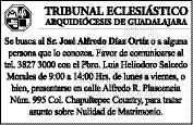 La Parroquia La Guadalupana (Francisco de Ayza 2623, Jardines de Guadalupe), anuncia sus Pláticas Pre-matrimoniales, cada 4to. domingo de mes, de las 9 a las 19 horas. Informes, al 36438001, de las 16 a las 20 horas.