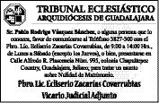 Juez del Tribunal Eclesiástico Interdiocesano de 2ª Instancia, con sede en la Arquidiócesis de Guadalajara