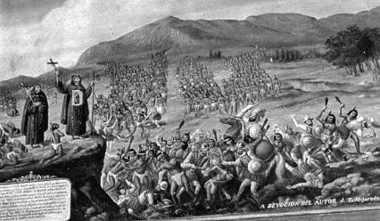 Fray Antonio de Segovia, en medio del combate entre los sublevados y los españoles, se acercaba a los indios y les sonreía. Y, aunque ellos lo rechazaban, él insistía. De un lado a otro andaba aquel Fraile sin cansarse, hasta que un día fijaron sus ojos en «lo que traía en el pecho». Vieron, sobre el hábito del Fraile, una luz; era el rostro de una Niña, una mirada tierna, una sonrisa amorosa...
