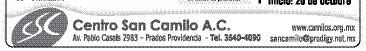 El Centro San Camilo ofrece el Curso-Taller de “Información y Formación en Cuidado Paliativo Pediátrico”, a realizarse del 13 al 15 de octubre, de las 9 a las 14 y de las 16 a las 20 Hrs. Está dirigido a Profesionales de la Salud y a voluntarios asistenciales, y es avalado por la Asociación Mexicana de Cuidados Paliativos y Algiología, A.C. Este Curso cuenta con validez curricular. Sede e informes: Centro San Camilo, Pablo Casals 2983, Col. Providencia. Tel. 36404090, ó con la Lic. Fabiola Montoya, al 044-33-1168-1114. Para conocer más sobre el tema de los Derechos del Niño Enfermo plasmados en las Modificaciones a la Ley General de Salud en Materia de Medicina Paliativa, visite: www. paliativosmexico.org.mx.