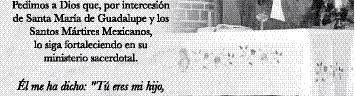 Y si podemos rezar el Rosario, hagámoslo y pongamos como Mediadora a la Virgen, a la Madre del Señor, a la que no le niega nada. Asimismo, debemos pedirle a nuestra Patrona particular, la Virgen Santísima de Guadalupe, quien escogió este pueblo como suyo, y a la cual reconocemos como nuestra Reina y veneramos como Madre… oremos para que Ella se encargue de arreglar lo que nosotros no hemos podido hacer.