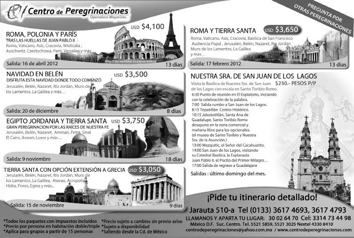 Se ofrece el Curso del Método Billings, en la Parroquia de la Virgen de Guadalupe en Ixtlahuacán del Río (Filiberto Ruvalcaba 18), el domingo 27 de noviembre, a las 10 Hrs. Consta de 8 sesiones de dos horas por día. Informes, al Tel. 3645-2042. También se convoca a los Instructores y Coordinadores de Decanato para hacer la Planeación Anual 2012, el domingo 27, de las 10 a las 13 Hrs., en la Parroquia del Señor Grande (Palma Sola 1545, Fracc. 18 de Marzo).