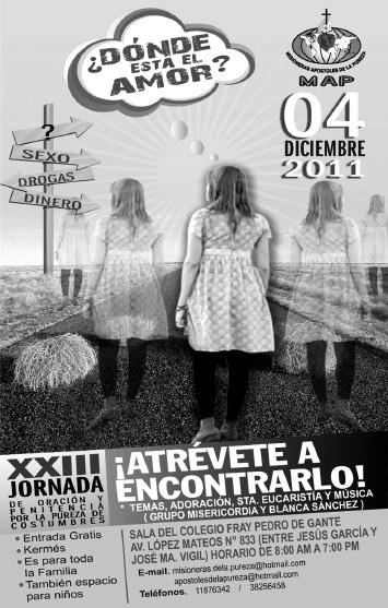 Las Hermanas Evangelizadoras Eucarísticas de los Pobres ofrecen una Tarde de Alabanza y Formación Familiar, el sábado 3 de diciembre a las 17.30 Hrs., en el Centro Cultural El Refugio (Donato Guerra 160, Tlaquepaque). Participan: el Padre Hipólito Hernández, con la Conferencia "Mi Escudo es mi Familia"; en Concierto Musical, Saraí. Informes, al 1578-0245.