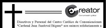 Semanario Arquidiocesano de Guadalajara Órgano de Formación e Información Católica Semanario Arquidiocesano de Guadalajara, fundado por el Sr. Cardenal Dn. Juan Sandoval Íñiguez, el 24 de enero de 1997 Registrado ante la Comisión Calificadora de Publicaciones y Revistas Ilustradas —CCPRI— en Certificados de Licitud de Título y Contenido números 10296 y 7226 expediente 1/432“97”/13565 el 20 de enero de 1998 y en el Instituto Nacional de Derecho de Autor, bajo reserva al uso exclusivo del título 04-2011-070709061600-101 el 7 de julio de 2011 Registro Postal Publicación Periódica PP14-0002-2000, autorización por SEPOMEX No se devuelven originales. Los escritos firmados son responsabilidad del autor, no de la publicación ni del titular Es una publicación editada por Creator Comunicacion, S de RL de CV., con oficinas y redacción en Isla Flores No. 3344-2, Col. Jardines de San José, Guadalajara, Jal., México, C.P. 44950 A.P. 3-31. Teléfono: 3002-6470. Suscripciones ext. 1953 | Publicidad ext. 1925 | Redacción ext. 1922 Horario de oficina: 8:30 am. a 5:30 pm., correo electrónico: semanario@cccomunicaciones.com.mx Página Internet: http://www.semanario.com.mx • Distribución: Mensajería Tercer Milenio, Jarauta No. 510-A, Tels. 3618-9670, planta alta. Guadalajara, Jal. C.P. 44360