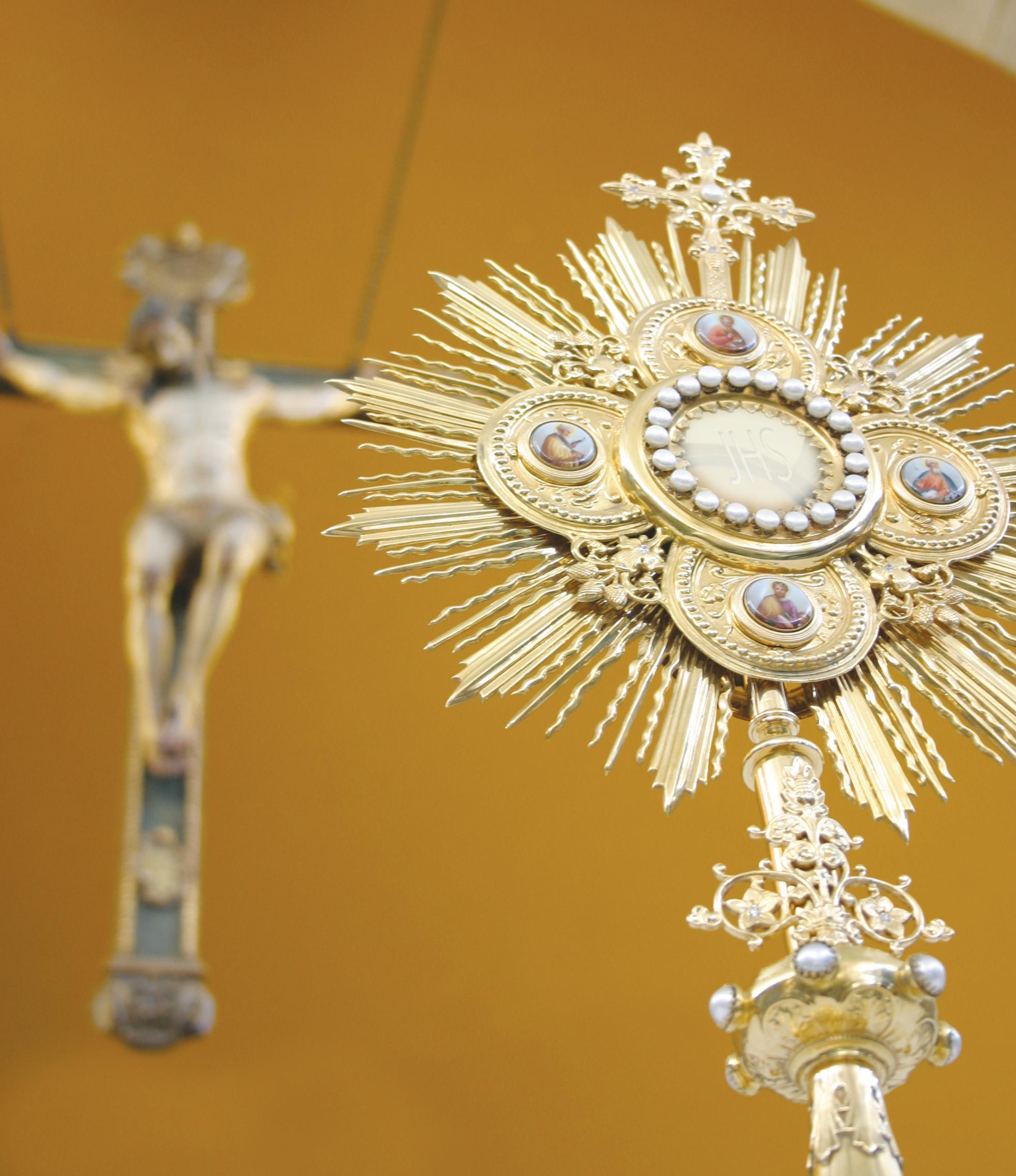 Asimismo, para recordar que la Eucaristía es sacrificio, porque actualiza la Muerte y Resurrección de Nuestro Señor Jesucristo para nuestra salvación, es banquete del cual podemos participar, comiendo el Cuerpo y bebiendo la Sangre de Cristo, como Él lo prometió, para participar de su misma vida.