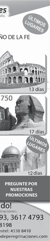 liza con la intención de compartir el “Pan de la Palabra” y tener una experiencia de prédica y oración. Se realizará el sábado 6 de julio a las 8.30 horas, en la Calle Angulo 1492, entre Pedro Buzeta y Andrés Terán. Informes, al 3615-7294 ó al 044-33-3119-1429.