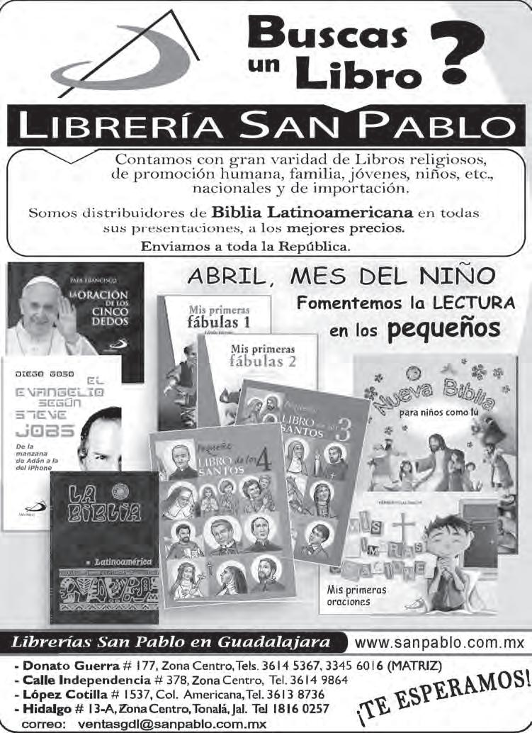Impreso por: Ediciones Católicas de Guadalajara, S.A. de C.V. con oficinas en Isla Flores N. 3344, Col. San José, Tlaquepaque, Jalisco. Tel. 3002-6470. Tiraje: 37,000 a 40,000