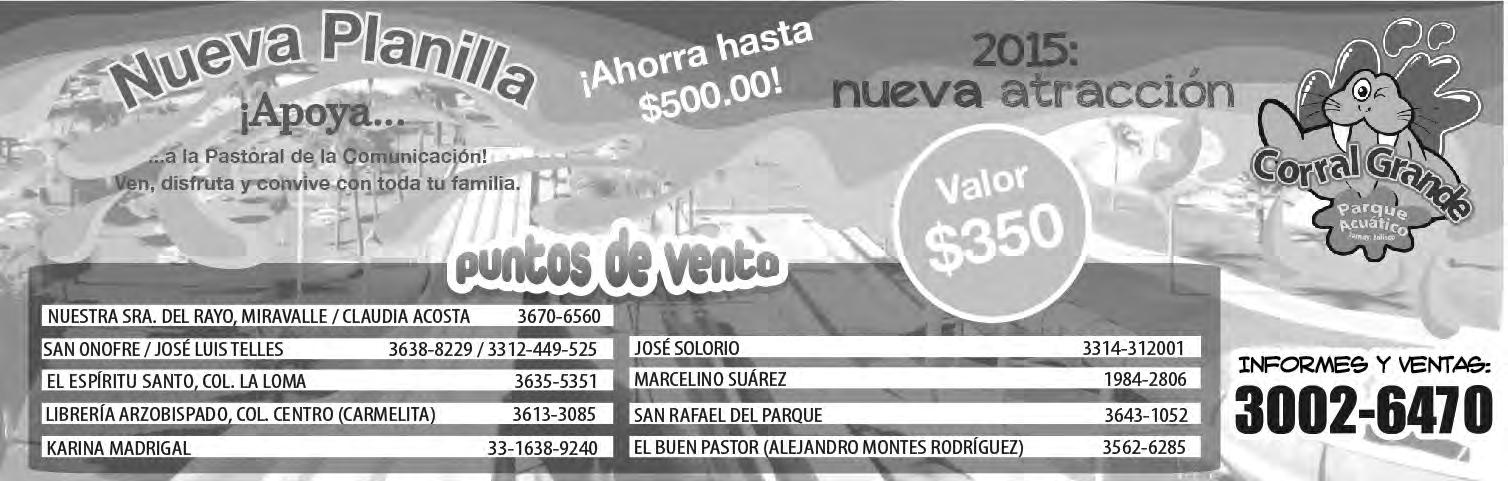 Impreso por: Ediciones Católicas de Guadalajara, S.A. de C.V. con oficinas en Isla Flores N. 3344, Col. San José, Tlaquepaque, Jalisco. Tel. 3002-6470. Tiraje: 37,000 a 40,000