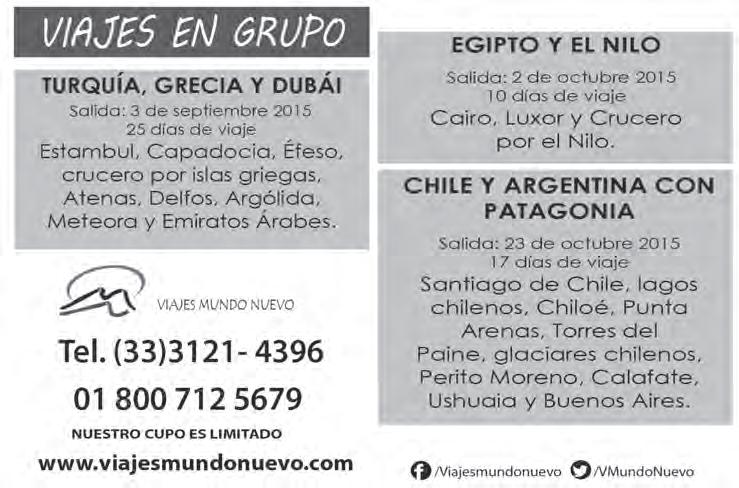 Horario de oficina: 8:30 a.m. a 5:30 p.m., correo electrónico: semanario@cccomunicaciones.com.mx Página Internet: http://www.semanario.com.mx • Distribución: Mensajería Tercer Milenio, Jarauta N. 510-A, Tel. 3618-9670, planta alta. Guadalajara, Jal. C.P. 44360