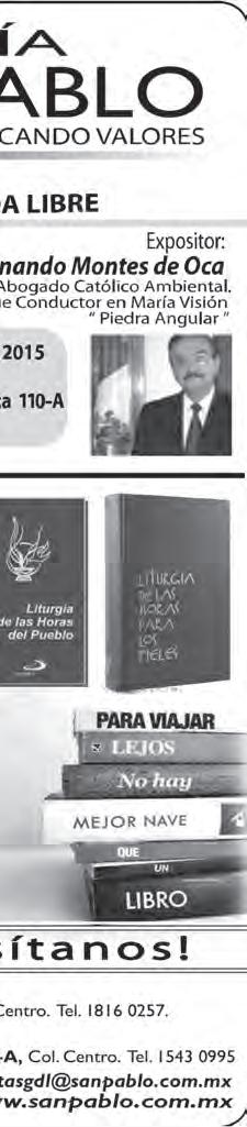 • Órgano de Formación e Información Católica • Semanario Arquidiocesano de Guadalajara, fundado por el Sr. Cardenal Dn. Juan Sandoval Íñiguez, el 24 de enero de 1997 • Registrado ante la Comisión Calificadora de Publicaciones y Revistas Ilustradas —CCPRI— en Certificados de Licitud de Título y Contenido números 10296 y 7226 expediente 1/432“97”/13565 el 20 de enero de 1998 y en el Instituto Nacional de Derecho de Autor, bajo reserva al uso exclusivo del título 04-2011-070709061600-101 el 7 de julio de 2011 • Registro Postal Publicación Periódica PP14-0002-2000, autorización por SEPOMEX • No se devuelven originales. Los escritos firmados son responsabilidad del autor, no de la publicación ni del titular • Es una publicación editada por Creator Comunicación, S. de R.L. de C.V., con oficinas y redacción en Isla Flores N. 3344-2, Col. Jardines de San José, Guadalajara, Jal., México, C.P. 44950 A.P. 3-31.