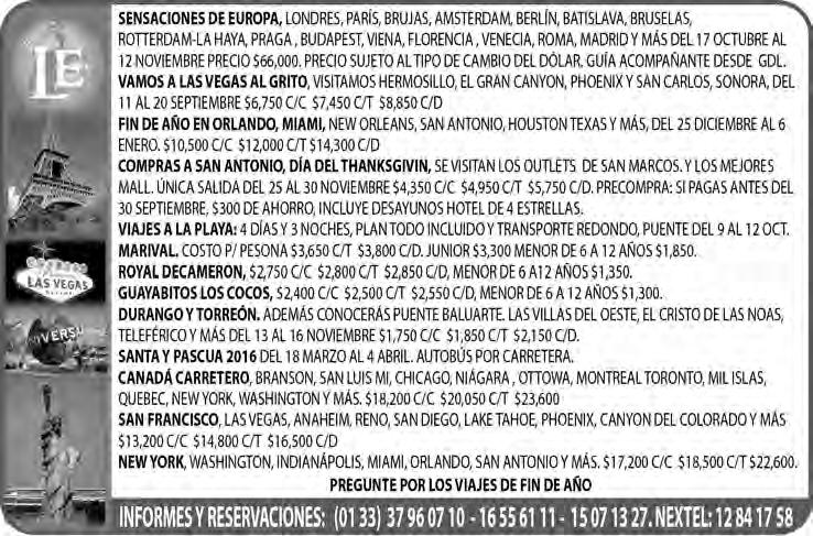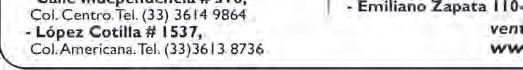 Horario de oficina: 8:30 a.m. a 5:30 p.m., correo electrónico: semanario@cccomunicaciones.com.mx Página Internet: http://www.semanario.com.mx • Distribución: Mensajería Tercer Milenio, Jarauta N. 510-A, Tel. 3618-9670, planta alta. Guadalajara, Jal. C.P. 44360