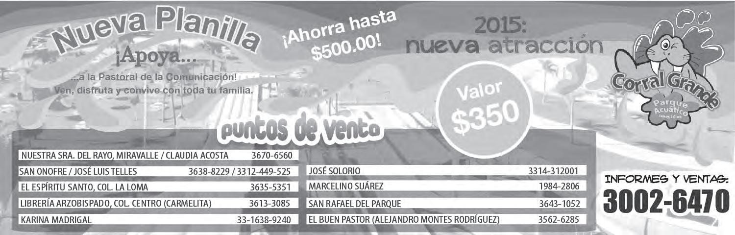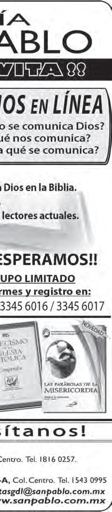 Impreso por: Ediciones Católicas de Guadalajara, S.A. de C.V. con oficinas en Isla Flores N. 3344, Col. San José, Tlaquepaque, Jalisco. Tel. 3002-6470. Tiraje: 37,000 a 40,000