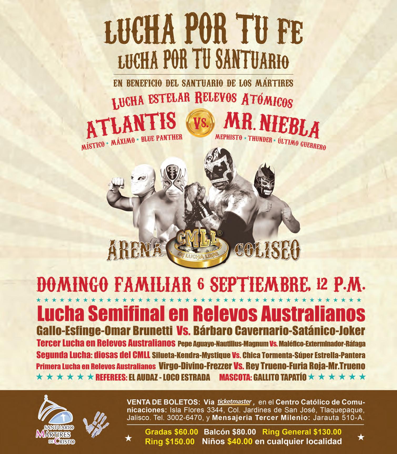 Luchadores Profesionales dan su testimonio de esfuerzo y dedicación en un deporte que plantea fuertes retos. Con desprendimiento, apoyarán para recabar recursos destinados a la construcción del Templo dedicado a los Mártires.