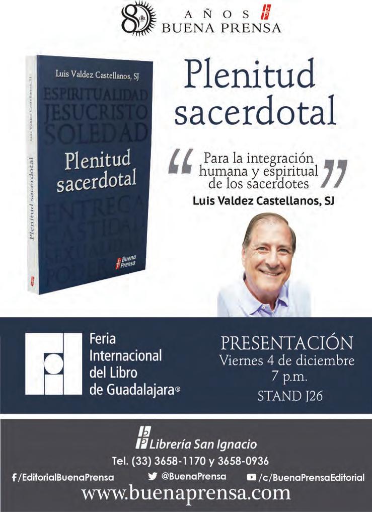 El viernes 4 de diciembre, a las 19 horas en el Módulo J-26 de la Feria Internacional del Libro, en las instalaciones de Expo Guadalajara, será presentado el Libro Plenitud sacerdotal, de la autoría de Luis Valdés.