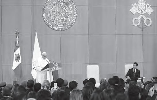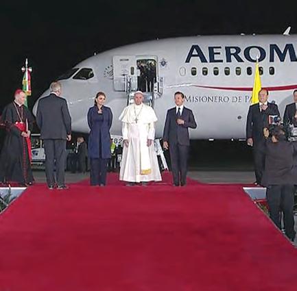 l día esperado se llegó. El Papa Francisco pisó suelo mexicano el viernes 12 de febrero, en punto de las 19.30 horas, y a su llegada al Hangar Presidencial del Aeropuerto Internacional “Benito Juárez”, de la Ciudad de