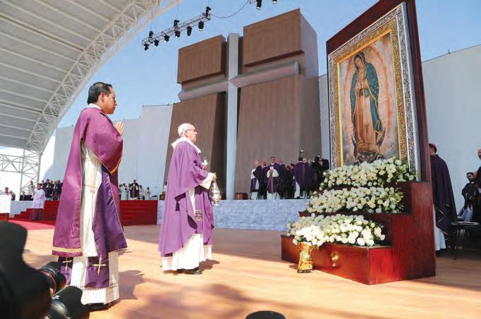 Pedimos a la Madre de Guadalupe que acompañe a Su Santidad a su paso por México, donde, como sus predecesores Juan Pablo II y Benedicto XVI, podrá experimentar el amor de un pueblo bueno y fiel