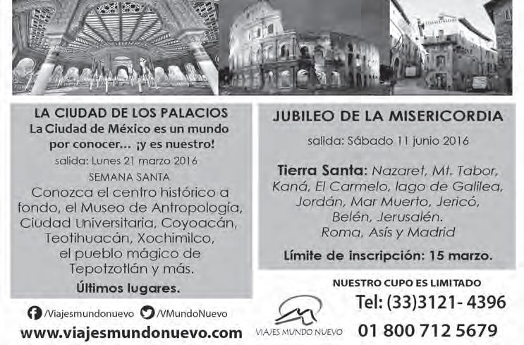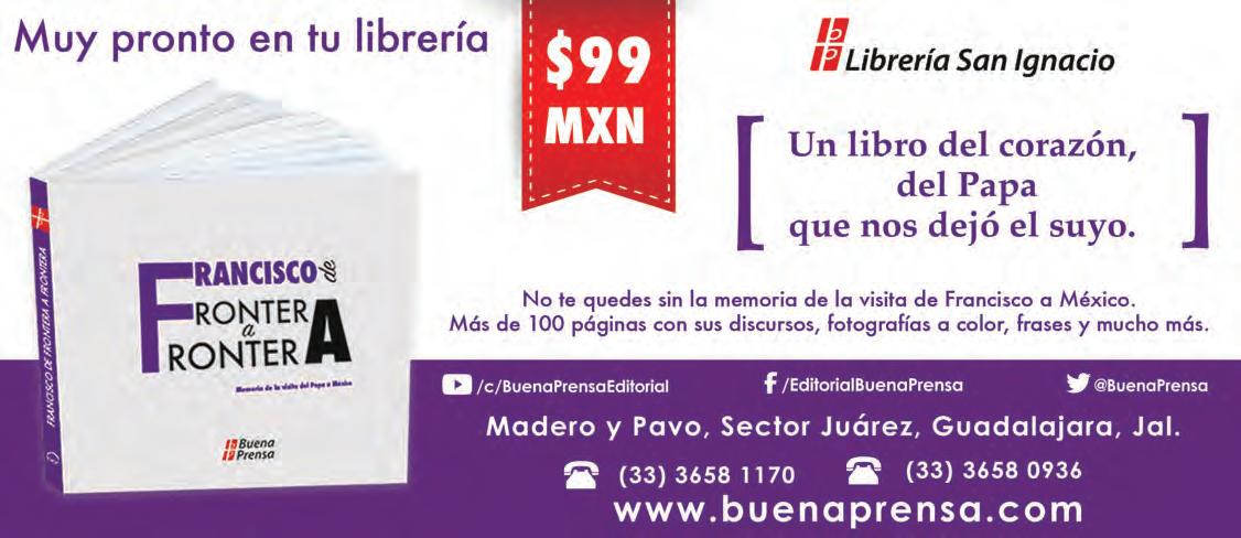 Horario de oficina: 8:30 a.m. a 5:30 p.m., correo electrónico: semanario@cccomunicaciones.com.mx Página Internet: http://www.semanario.com.mx • Distribución: Mensajería Tercer Milenio, Jarauta N. 510-A, Tel. 3618-9670, planta alta. Guadalajara, Jal. C.P. 44360 Impreso por: Ediciones Católicas de Guadalajara, S.A. de C.V. con oficinas en Isla Flores N. 3344, Col. San José, Tlaquepaque, Jalisco. Tel. 3002-6470. Tiraje: 37,000 a 40,000