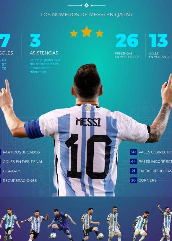 primer Mundial sin Messi desde Alemania 2006. El propio Lío declaró que no se veía jugando a los 39 años, que tendrá en 2026, y en verdad es una edad a la que llegan muy pocos jugadores. En Qatar hubo un futbolista de 39, el portugués Pepe, que hasta convirtió un gol de cabeza a Marruecos. Pero siempre un defensor tiene menos exigencia física que un volante o delantero. Una esperanza: Messi quiere estar en la próxima Copa América, para darse el gusto de jugar sin la presión de ganar un Mundial. Si se siente en forma, quizás postergue el retiro…