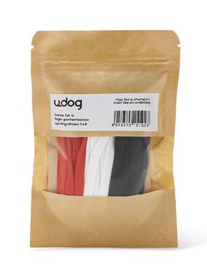 Les lacets traditionnels ont tendance à se desserer lors du pédalage, c’est pourquoi UDOG utilise des lacets spécialement conçus, plats et serrés, sans élasticité et sans espace d’air à l’intérieur créant un effet de noeud solide qui garantit un ajustement optimal, même pour les sorties les plus exigeantes. Les lacets UDOG sont fabriqués à 100% à partir de polyester recyclé et sont exempts de PFC.