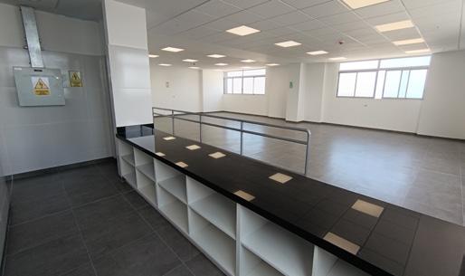 El moderno edificio de ocho niveles, construido incorpora 28 aulas, 7 laboratorios y 3 talleres ETI, destacan los laboratorios de Redes y Seguridad Informática y de Industria 4.0, diseñados para que los alumnos aprendan en entornos que replican la realidad del sector productivo.