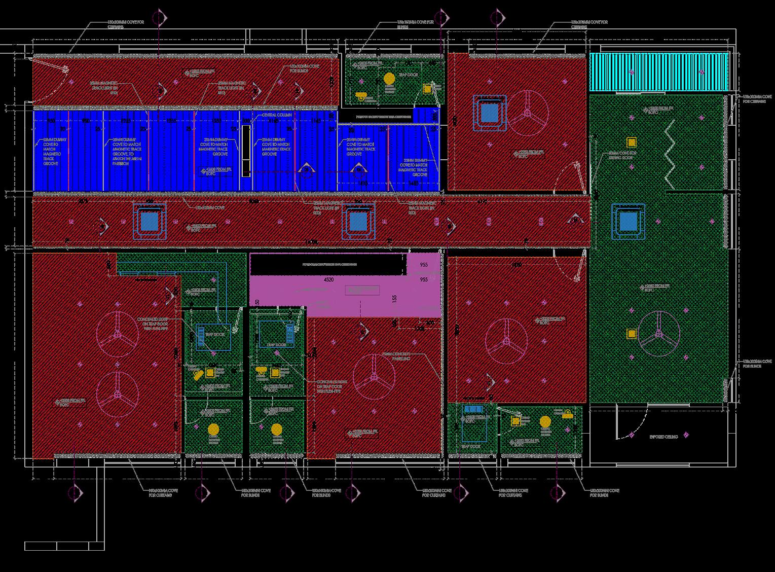 The drop in the ceiling is also used to house the air conditioning for the entire space.