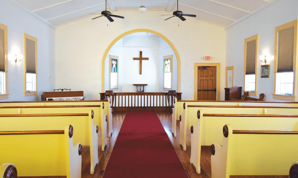 That nonprofit, formed from First Baptist congregants, has a 25-year lease that expires next year. They preserved the original wooden floors, stained-glass windows, altar rail and tin roof and also added a similar small building behind the relocated chapel with restrooms, changingsitting rooms and an office area.