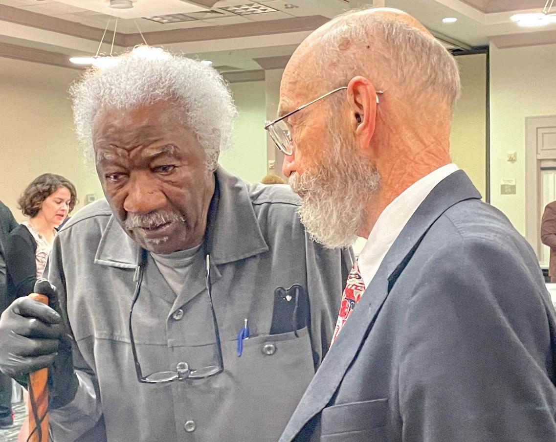 Roy Yates and Rob Mayo, fellow bass players, sat together at the jam. Mayo, a first-time attendee, was quick to catch on and said he was quite impressed with the turnout.