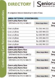 For more information about one of our advertisers featured in Senior Living Choices, please send an email to Kameron.SeniorLiving@gmail.com. Please let us know which communities, services or products you are interested in. Don't forget to include your name, phone number, email and address in the email. This will assist in letting the community know your preference in being reached.