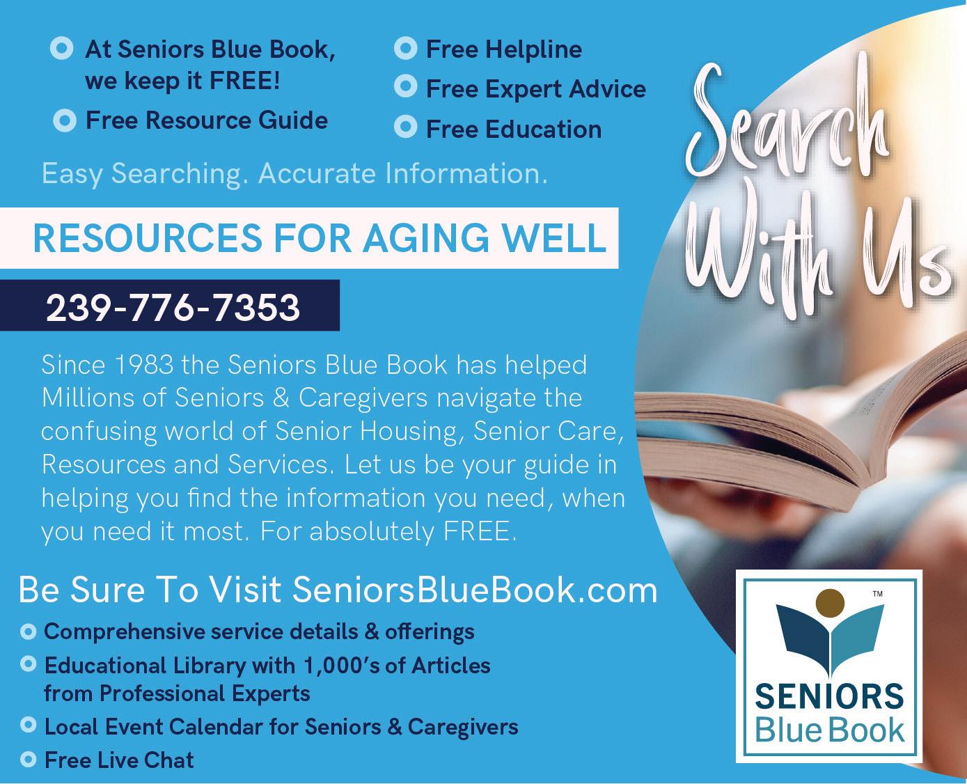 At Seniors Blue Book, we feel Knowledge is Power and our goal is to provide you to be pro-active vs reactive when it comes to crafting a plan for aging well. We do this by providing consistent education, whether that be in person at one of our SBB University programs, on our digital article library which hosts thousands of educational editorials at seniorsbluebook.com/articles, or even on our local Facebook page at facebook.com/ SeniorsBlueBookLeeCollier/.
