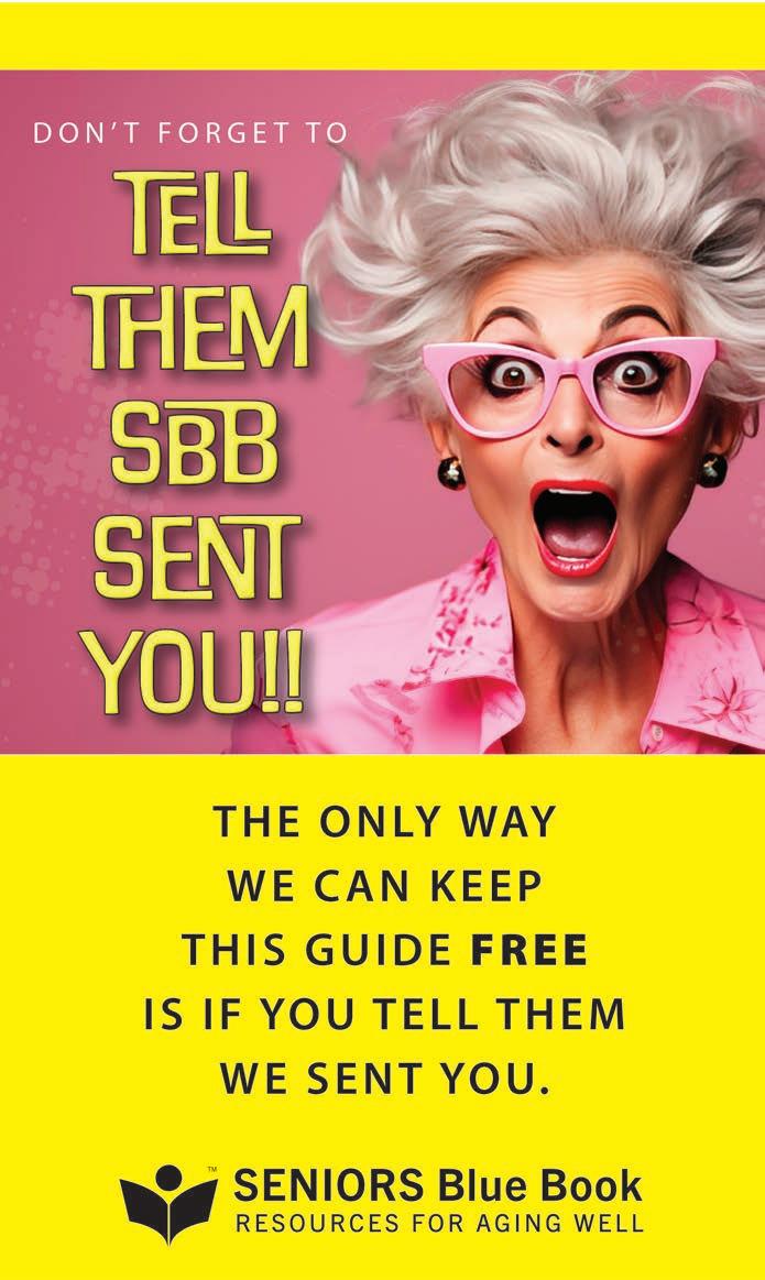 At Seniors Blue Book, we pride ourselves on compiling a complete book of resources for seniors, their caregivers, family members, and our respected senior industry professionals. Our goal is to educate and provide helpful resources to the community. Part of that includes getting this guide into the hands of all who need it! As always, we ask that you please tell our supporting partners that you heard of them from the Seniors Blue Book, so that we can continue to bring you this valuable resource guide FOR FREE!
