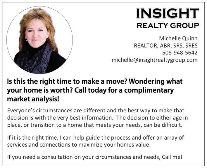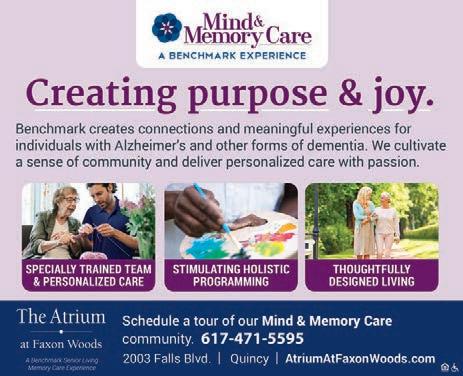 Editor’s Note:This article was submitted by Mairead Bagley, Director of Mind & Memory Care at New Pond Village. She may be reached at 508-660-9589 or by email at mbagley@benchmarkquality. com. See ad on page 1.