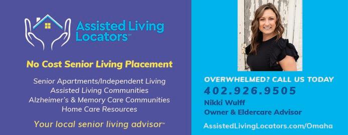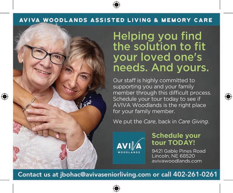 Heritage Pointe 168th & Blondo • 402-215-0572 The Heritage at Legacy 168th & Center • 402-281-0606 The Heritage at Sterling Ridge 132nd & Pacific • 402-281-2609 Visit heritagecommunities.com or call for more info today! Life is more fun with Friends Plus Columbus, Grand Island, Hastings, Sioux City, Glendale/Phoenix, and North Dallas Enjoy life with friends in apartment-style homes with personalized services. Independent Living | Assisted Living | Memory Support The Heritage at Fox Run Council Bluffs • 402-281-2493 Heritage Ridge Bellevue • 402-281-0502 The Heritage at Shalimar Gardens Fremont • 402-317-5382
