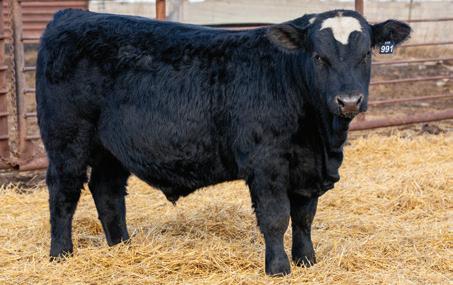 Here is a Black hided half-blood out of an honest commercial black angus cow. He was another nice calf this summer I thought we’d keep and offer in the sale. 991 is six coming seven-year-old Angus cow that raises good calves consistently every time. I trust this bull’s genetics will add weight and kind to his progeny. He has scurs.