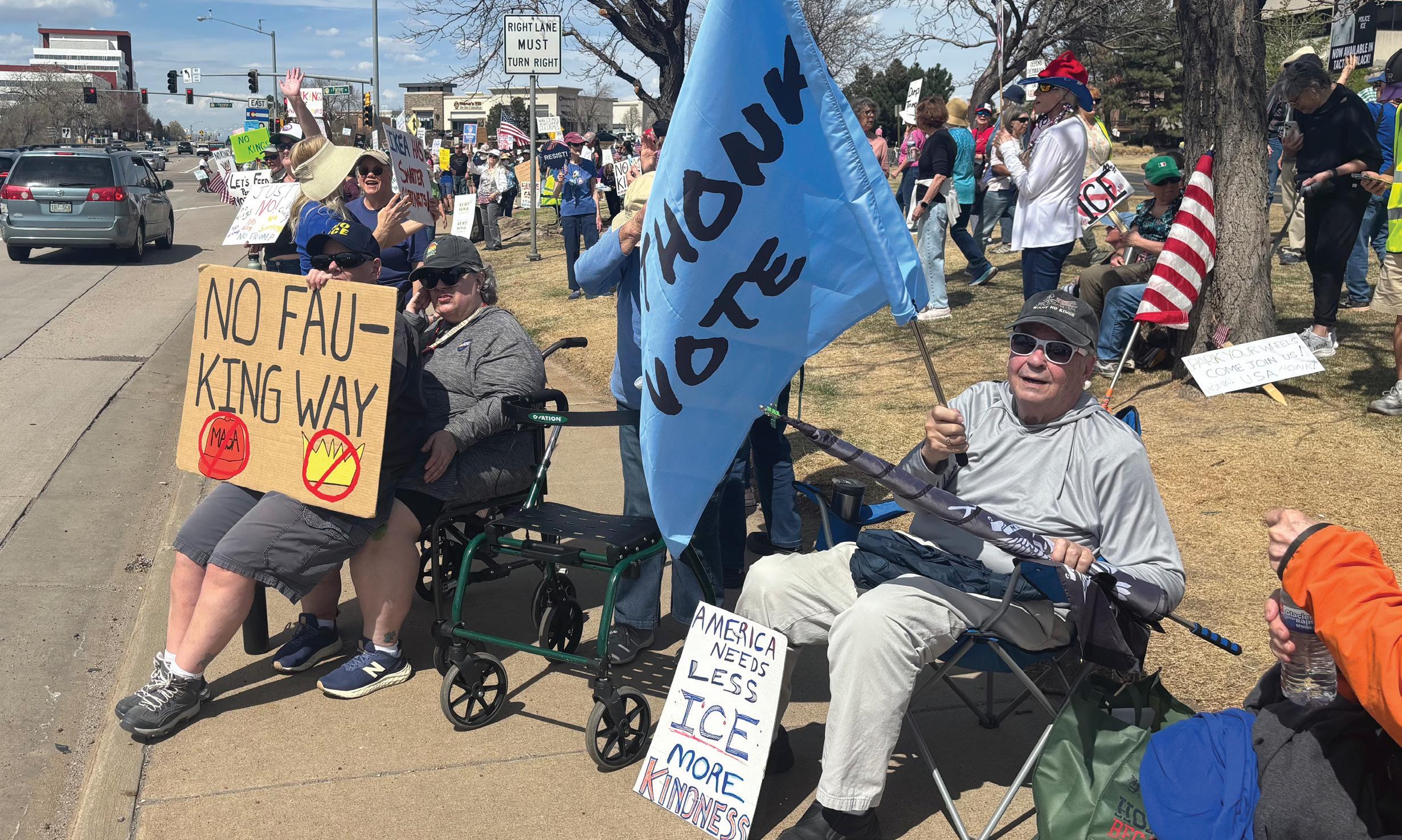There were plenty of folks who made clear this was not their first No Kings rodeo, having attended the two previous rallies at the intersection of South Havana Street and Parker Road.