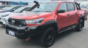 Maximum vehicle braked towing capacity is subject to state and federal regulatory requirements. Before towing, customers should consider the vehicle’s limitations, including towing capacity specifications, gross vehicle mass (GVM), gross combined mass (GCM), kerb weight specified by the manufacturer, and ensure that individual front and rear axle load limits are not exceeded as also specified by the manufacturer. Vehicle payload calculation is GVM less kerb weight or as otherwise specified in the vehicle owner’s manual. Actual payload is affected by any added load to the vehicle, including the number of occupants, luggage, accessories, and tow ball download weight. It is important to consider the actual payload, to ensure the fully loaded vehicle remains within the specified GVM limits.For more details, please refer to the vehicle’s Owner’s Manual/ Toyota Basic Towing Guide or consult your authorised dealer. Toyota recommends use of a Load Distribution Hitch (LDH) when towing loads greater than 2.2T as specified in the Owner’s Manual. Based on road conditions, a LDH may not be suitable. Refer to Toyota Basic Towing Guide. Toyota Genuine LDH sold separately at additional cost. Warranty conditions apply. Refer to Toyota Warranty Advantage Guide. Pre-production model shown.