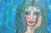 Explores feminine connections to nature, folklore, and symbolism through richly textured, patterned works.